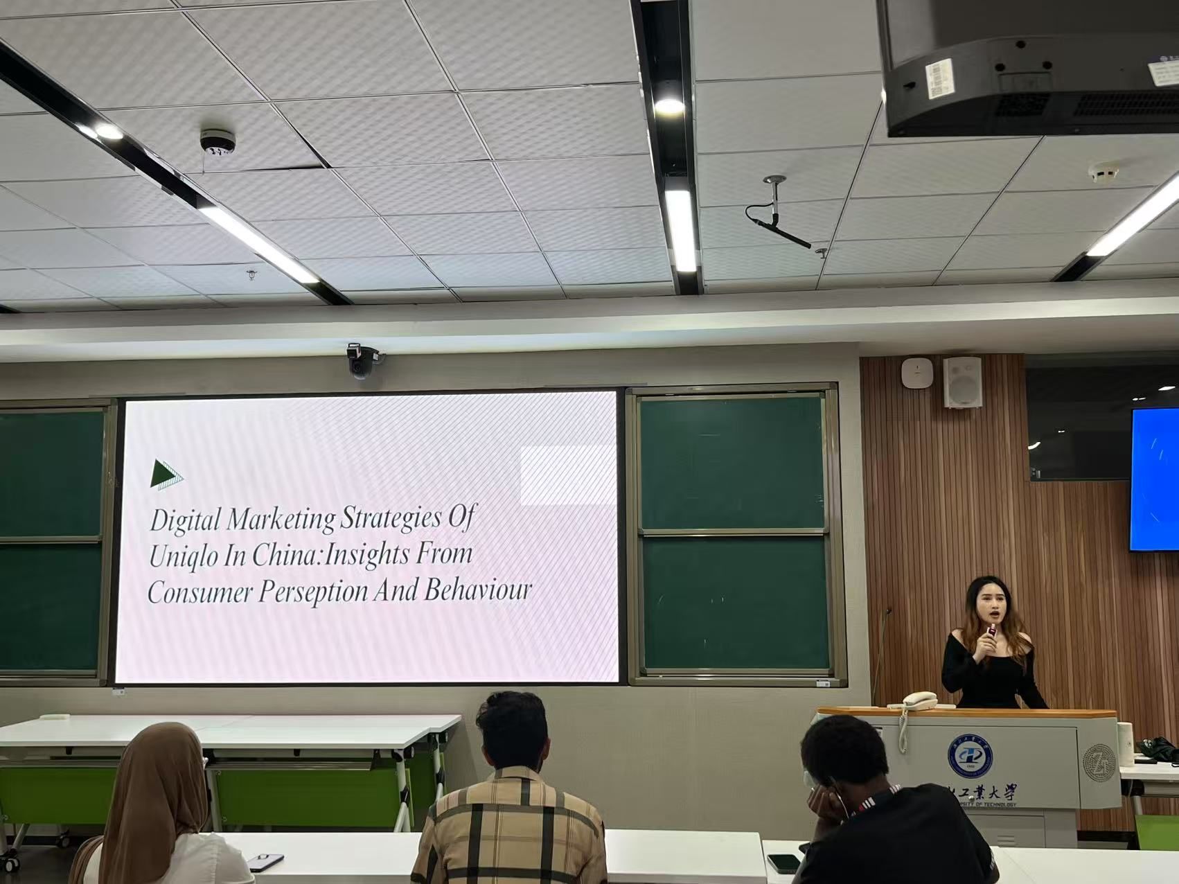2023级工商管理专业来华留学硕士生LAMICHHANE ROSE和EDRISSI AKRAM分别作了题为“The Process behind the Research Paper Publication”(研究论文发表的过程)和“How to Conduct Market Research in Business Administration(如何开展工商管理的市场营销研究)”的学术报告。